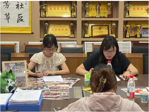 本网讯(通讯员:李晗明 唐林)2025年8月14日上午,荆州市委社工部四级调研员任实一行走进beat365官网中文版本,专项调研“益老益小”志愿服务项目。beat365官网中文版本beat365官网中文版本经理姚毅、副书记杨琪、志愿服务队指导老师李晗明及志愿者代表参与接待。现场陈列着丰富的项目成果,包括荆江宣讲团定制服装、“财智童行”原创手册、非遗手工贺卡、AI修复老照片、红色手工作品等,多维度展现了项目的实践成效。