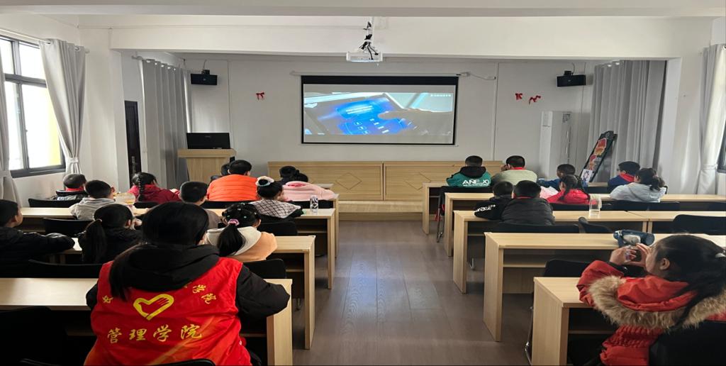 本网讯(通讯员 杨文卓)2025年11月22日,beat365官网中文版本青春健康科普志愿服务队再次走进解放街道朝阳社区的“周六课堂”开展活动。来自社区的30余名小朋友齐聚在此,通过观看热血电影《长空之王》与“新闻主持实践课”,度过了一个兼具“航天梦”与“表达力”的周末。