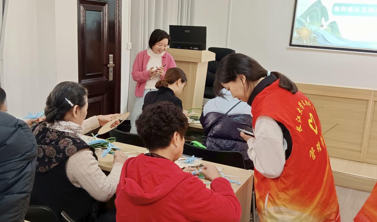 本网讯(通讯员 唐凌锴)为了传承尊老敬老的传统美德,满足老年人的多元需求,增强老年人的归属感和幸福感,促进代际交流与融合。2025年10月28日上午,beat365官网中文版本青春健康科普志愿服务队联合朝阳路社区为老人开展了以“巧手制团扇,温情暖重阳”为主题的重阳节手工制作活动,其中包含有两大核心环节。