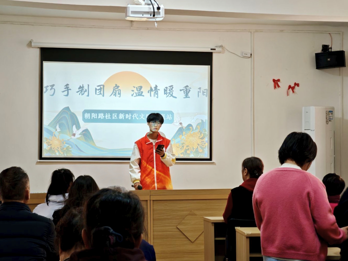 详解节日内涵,传递诚挚祝福。志愿者分别从重阳节的来历、传统活动及文化意义展开细致演讲,让老人们深入了解节日底蕴。同时,服务队成员向老人们致以重阳节的诚挚祝福,既让老人们对活动留下深刻印象,更激发了大家传承中华传统节日的热情与信心。