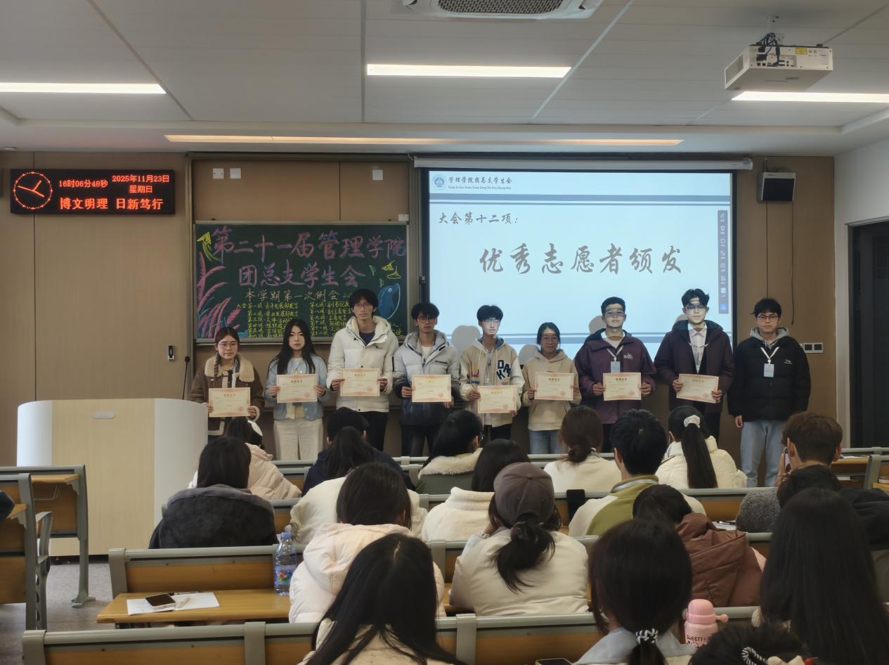 会议还设置了专项学习与表彰环节。新媒体网络部干事首先围绕宣传工作实用技能开展学习分享,为成员提升宣传工作质效提供新思路;随后进行的文体排版格式培训,青年发展部覃雯婕结合实际案例,细致讲解了排版规范、格式要求及常见问题规避方法,助力成员夯实基础技能。培训结束后,会议对运动会期间表现突出的志愿者颁发了荣誉证书,这既是对志愿者辛勤付出的肯定,也激发了全体成员的工作热情。