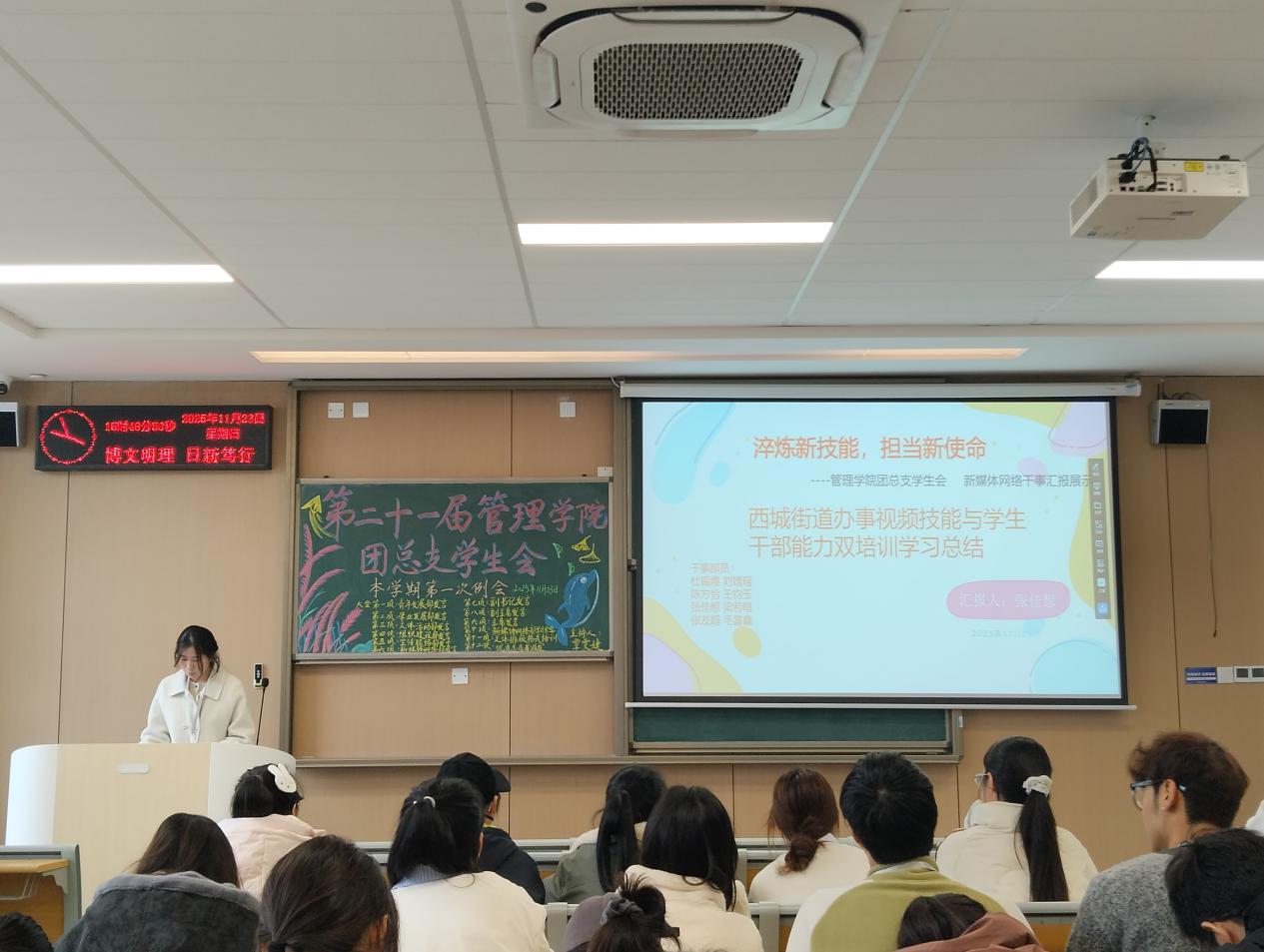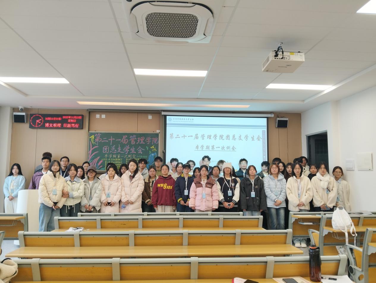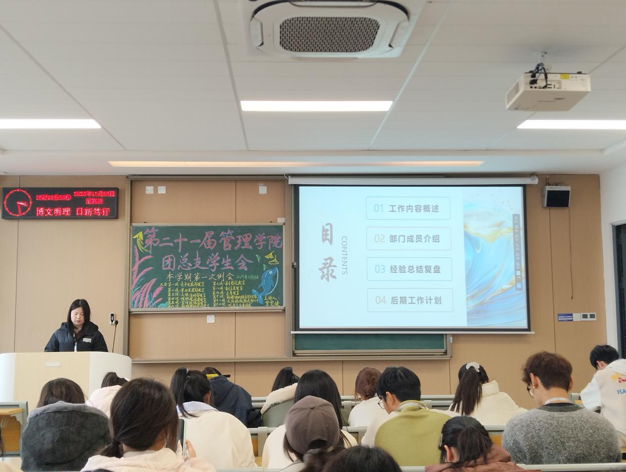本网讯(通讯员 刘靖瑶)为总结近期工作成效、分析存在问题,规划下一阶段发展方向,2025年11月23日下午15:00,第二十一届beat365官网中文版本团总支员工会第一次例会在教学楼C-422教室召开。本次例会由青年发展部覃雯婕主持,beat365官网中文版本团总支员工会全体成员准时参会。