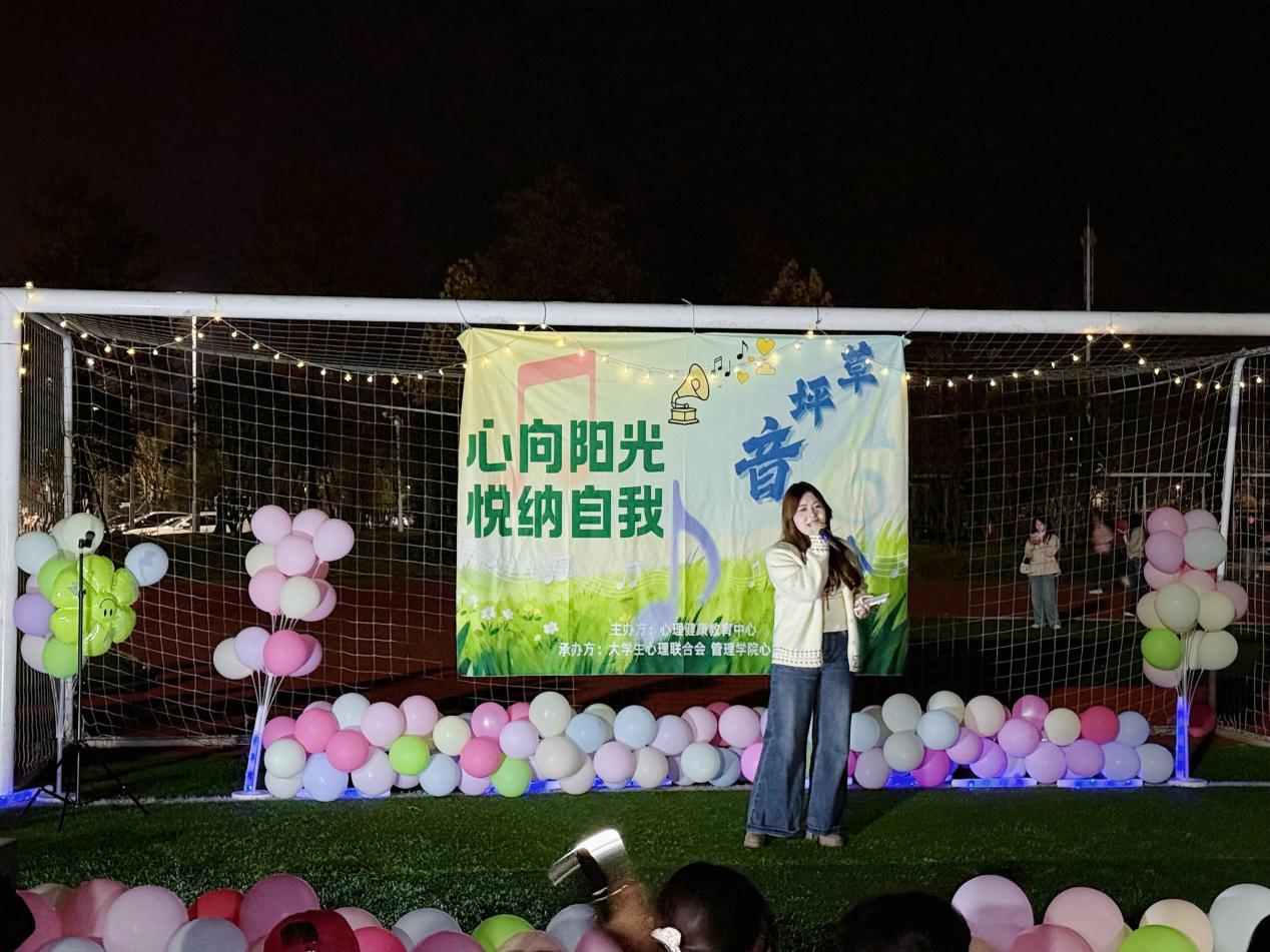 本网讯(通讯员 张友超)星光璀璨,晚风微拂,一场以“心向阳光·悦纳自我”为主题的草坪音乐会于11月14日18:00-21:00在操场南面活力开演。本次活动由心理健康教育中心主办,老员工心理联合会、beat365官网中文版本心灵驿站联合承办,通过音乐与心理互动的创新形式,为师生们打造了一场兼具艺术感染力与心理疗愈力的视听盛宴。