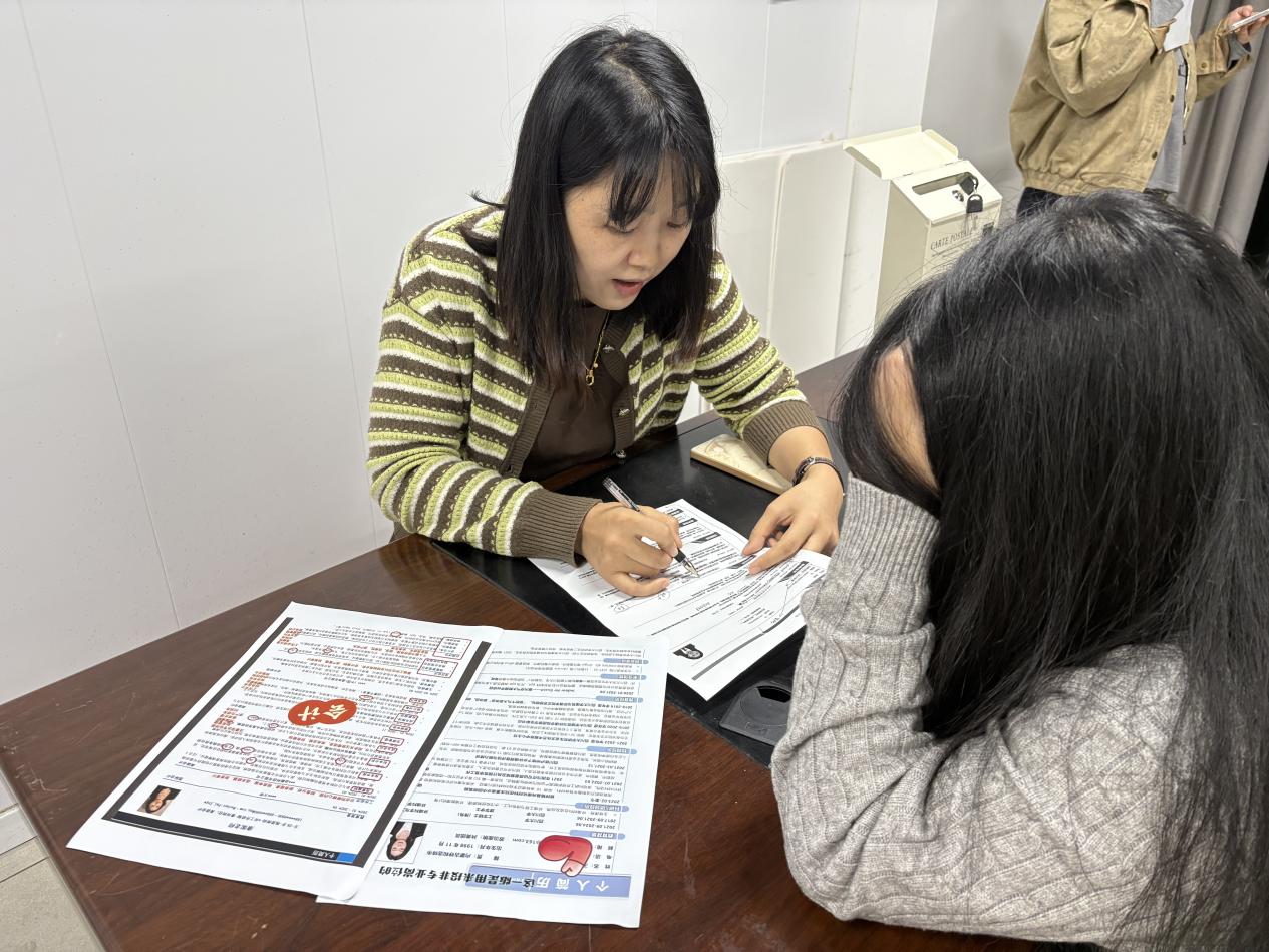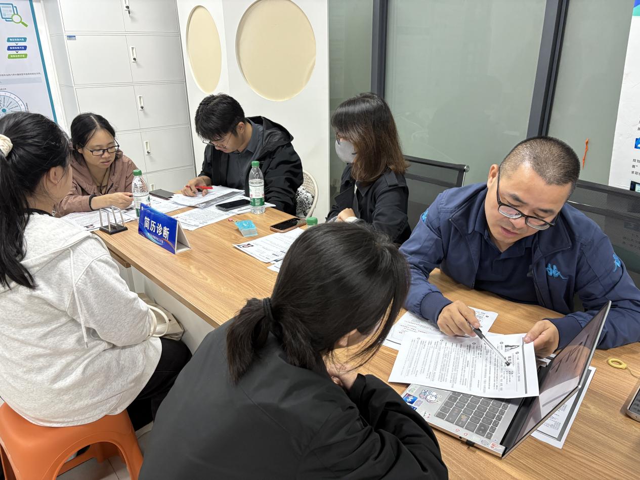 活动现场气氛热烈,同学们带着精心准备的简历踊跃参与。指导老师们化身“简历医生”,进行一对一的精细辅导。他们不仅从宏观上审视简历的结构与逻辑,更在细节处精雕细琢,包括如何提炼与岗位匹配的核心优势、如何运用实习经历与成果等。