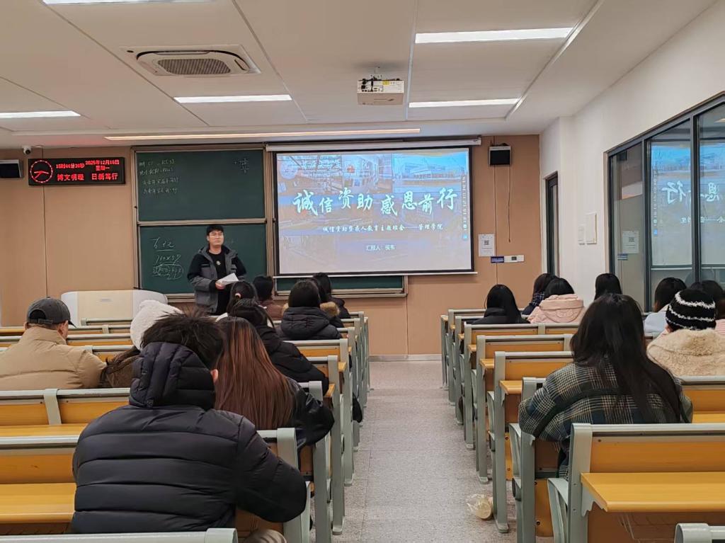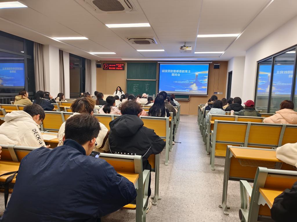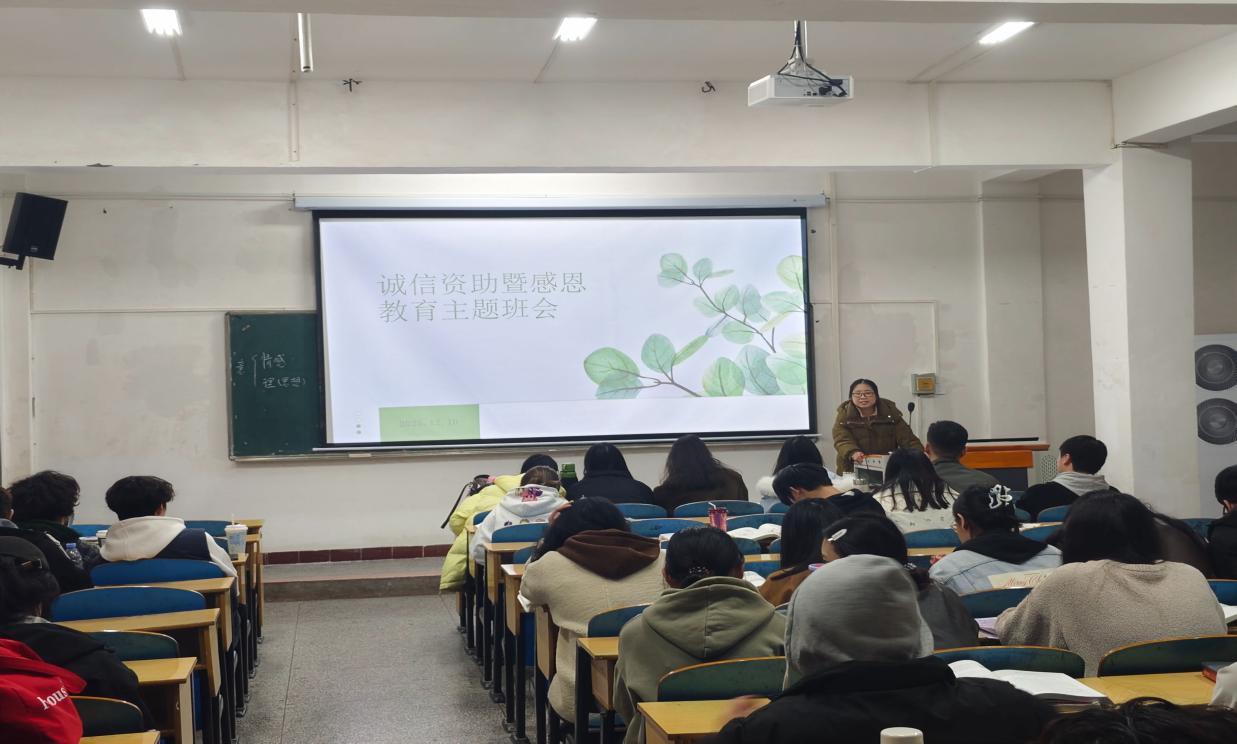 本网讯(通讯员 杨柳 王旷衡)为深入落实国家资助政策,深化资助育人成效,增强员工的诚信意识、感恩意识和社会责任感,培养员工诚信感恩、自信自爱、自强自立的高尚品质,诚信资助暨感恩教育主题班会于2025年12月10日在207教室召开。