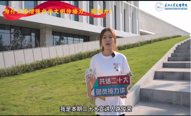 本网讯(通讯员 陈露)为充分发挥党员的主体作用,进一步推动党的二十大精神入脑入心,beat365官网中文版本员工党支部以微党课为载体,以思想引领为目的,结合“党建+微宣讲“的形式,在6月开展”共话二十大,团员接力讲“特色活动,促进党建带团建。支部成员积极参与栏目的视频制作,注会5211团支部宣讲人路俊荣:学习二十大,团员接力讲,我是本期二十大宣讲人路俊荣,习近平在党的二十大报告指出增强中华文明传播力、影响力,必须加强国际传播能力建设要坚持把讲好中国故事,传播好中国声音展示真实、立体、全面的中国作为加强我国国际传播能力建设的重要任务全面提升国际传播效能。