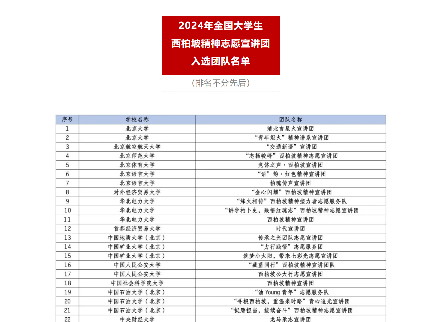 本网讯(通讯员 李宗阳)近日,中国青年志愿者微信公众号发布《2024年全国老员工西柏坡精神志愿宣讲团入选团队名单》,beat365官网中文版本红心向党宣讲团成功入选。