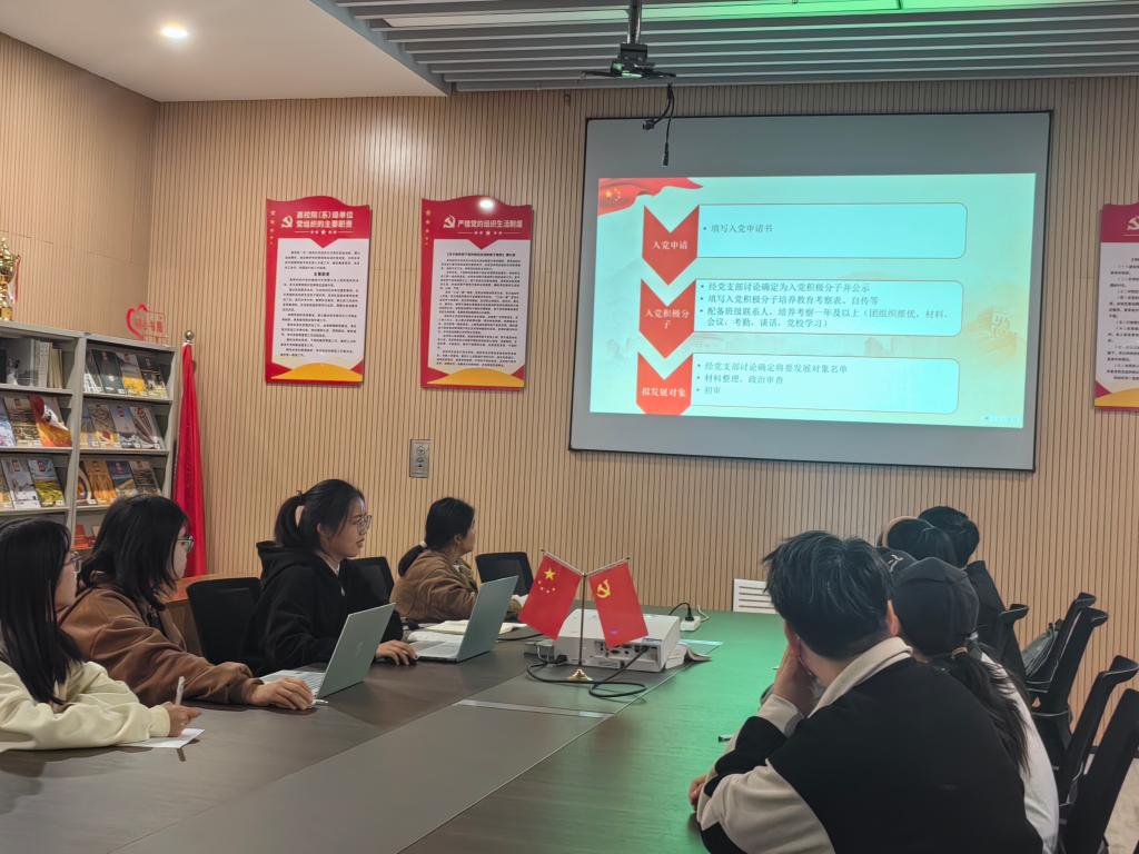 会上,何培茹同志就入党流程和材料格式进行了详细的讲解,着重讲述了班级联系人的工作职责。在入党流程方面,要认真向班级入党积极分子讲述入党具体流程,包括入党积极分子、拟发展对象、发展对象、预备党员、正式党员;同时,积极鼓励、引导他们积极参与公司活动。在材料格式方面,何培茹同志以遇到的典型问题为例,针对书写材料时遇到的各种问题进行详细讲解,提出班级联系人要积极督促入党积极分子严格按照要求书写入党申请书、思想汇报以及党章学习心得。