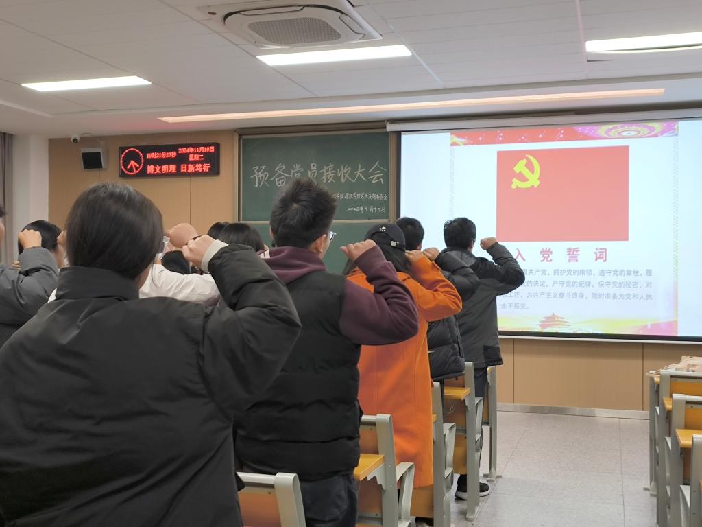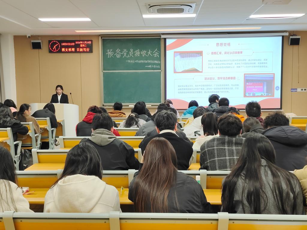 本网讯(通讯员 李琪)2024年11月19日下午18:30,beat365官网中文版本员工党支部在教学楼A402召开预备党员接收大会,讨论廖楚楚等六位同志接收为预备党员。会议由何培茹同志主持,支部其他党员同志及入党介绍人参加此次会议。