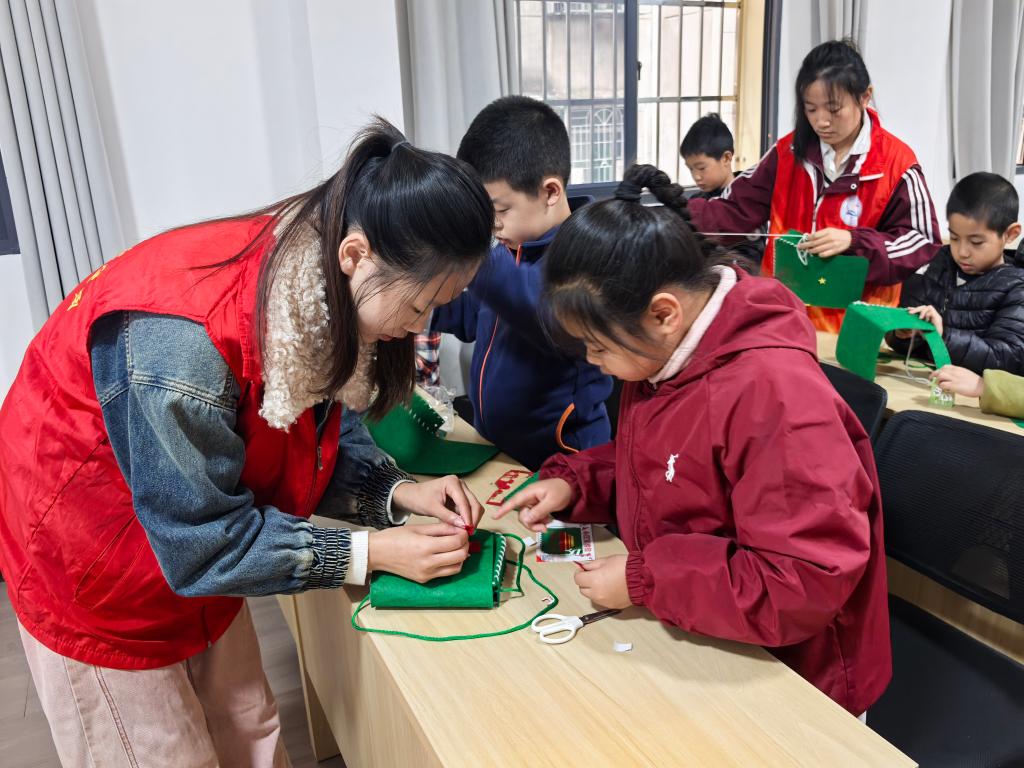 随后的手作体验将活动推向高潮。在支部同志的耐心指导下,孩子们兴致勃勃地投入到“红军小挎包”的制作中。一针一线不仅缝制出像模像样的作品,更串联起对历史的感悟与对先辈的敬仰。捧着自己的劳动成果,孩子们爱不释手,这份亲手创造的“红色记忆”成为了连接历史与现实的独特纽带。