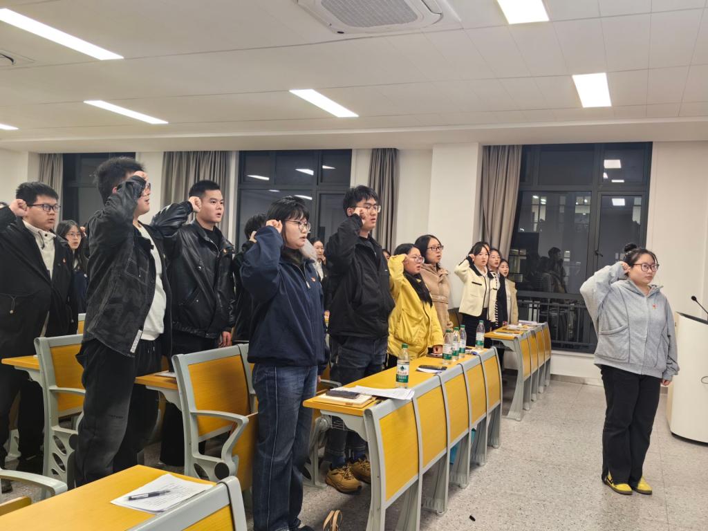 会议最后,在汪李雨涵同志的带领下,全体党员面向党旗,庄严举起右拳,重温入党誓词。铿锵有力的誓言回荡在会场,激励着每一位党员不忘初心、牢记使命,时刻以党员标准严格要求自己,不断加强党性修养,以实际行动践行责任与担当。