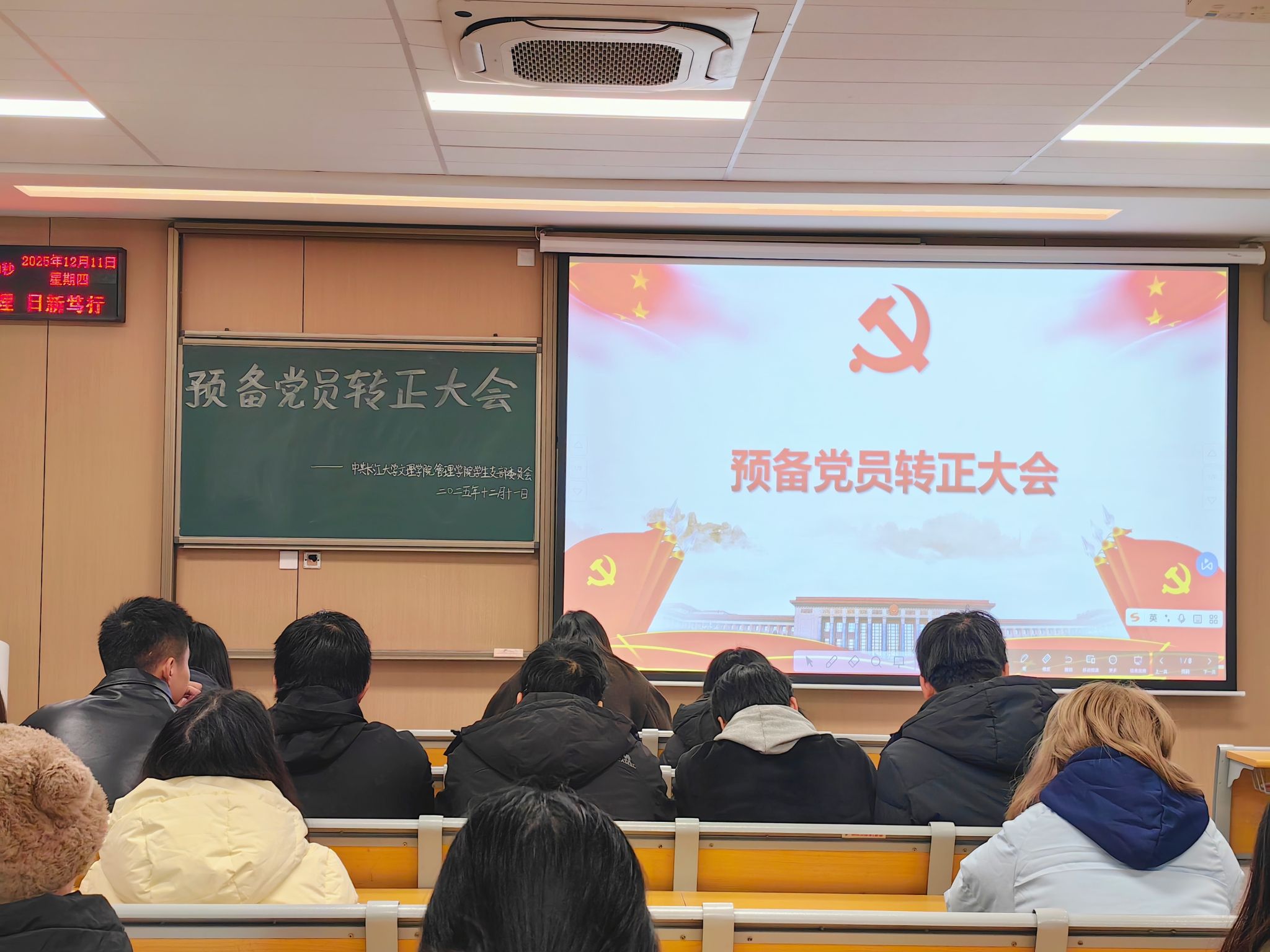 大会在庄严肃穆的氛围中拉开序幕。首先,申请转正的米庆存同志上台,就其在预备期内思想觉悟的显著提高、理论学习的持续深化、实践锻炼的积极参与以及日常生活中的模范表现等方面,进行了全面、诚恳的汇报。他深刻总结了过去一年的成长收获与存在的不足,并郑重表达了渴望按期转为中共正式党员、立志为党和人民事业贡献全部力量的坚定决心。