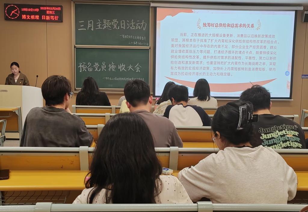 会议上,所有参会人员在主持人的带领下重温入党誓词。首先,大家集体学习《中国共产党章程》(第四章),学习习近平总书记在看望参加政协会议的民盟民进教育界委员时的重要讲话:强化教育对科技和人才支撑作用,形成人才辈出人尽其才才尽其用生动局面;学习《求是》杂志发表的习近平总书记的重要文章——《经济工作必须统筹好几对重要关系》;学习2025年全国两会精神;学习2025年全国教育工作会议精神;学习2025年全省教育大会精神;学习《中国教师报》刊发的署名文章《“七有”才论教育家》等重要内容。
