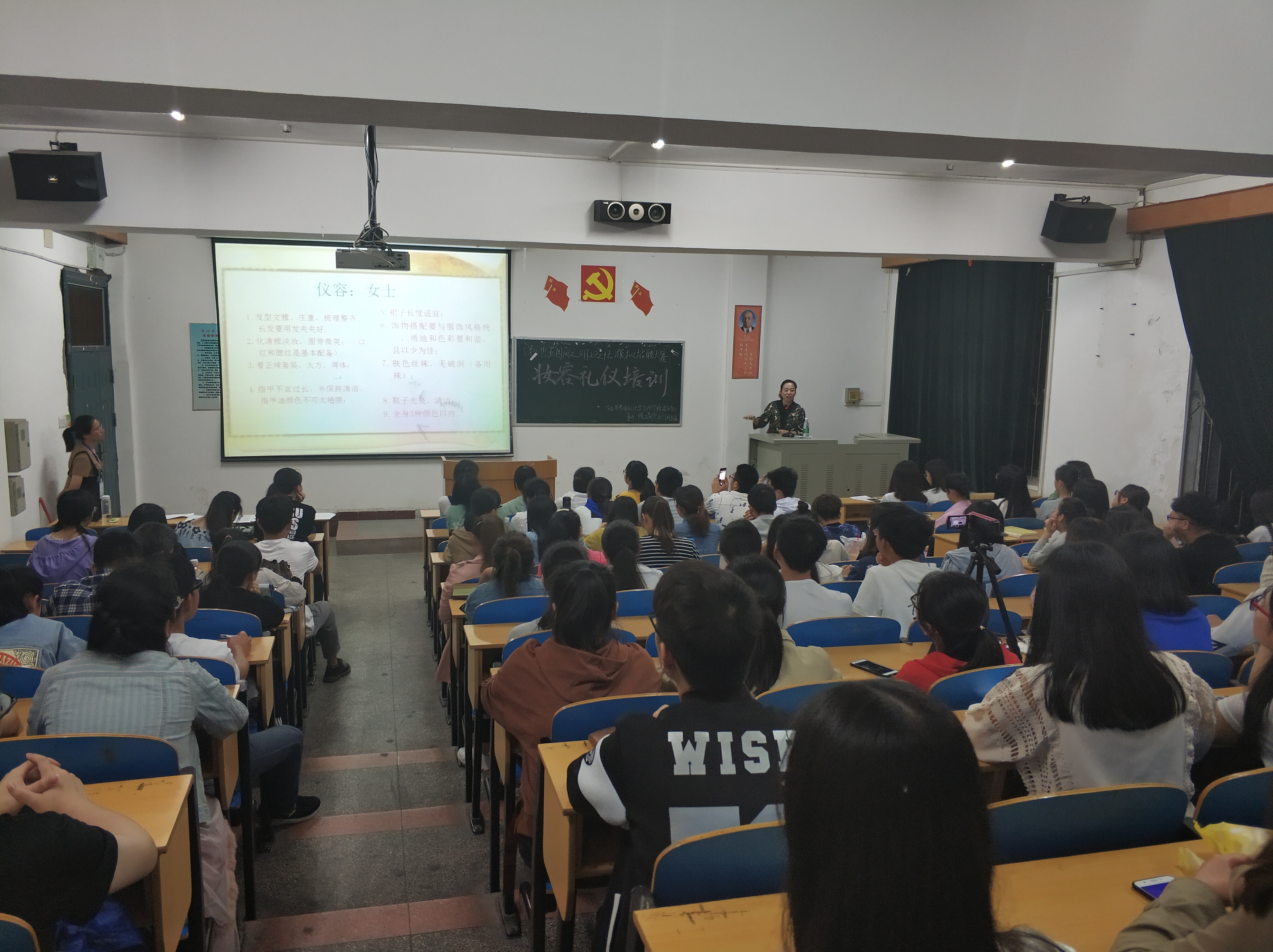 2018年4月28日19:00于一教414开展了就业礼仪妆容培训,本次培训活动是针对15级2019届毕业生以及系团总支承办的科技文化节“明日之仕”模拟招聘大赛复赛选手。培训主讲人是我系辅导员涂晓洁老师。
