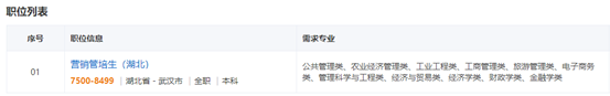 岗位名称:营销管培生招聘人数:40人