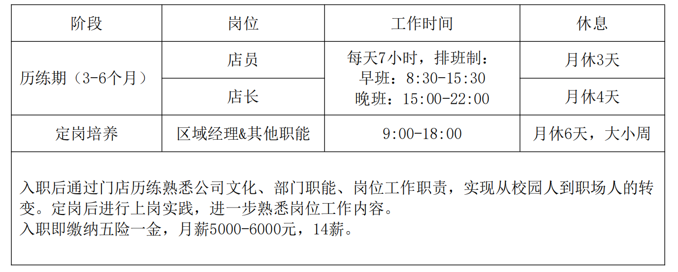 【校招岗位需求】-门店储备管理岗