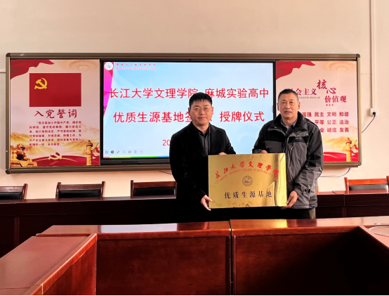 曹骥代表公司与麻城实验高中签订优质生源基地共建协议,并举行授牌仪式。
