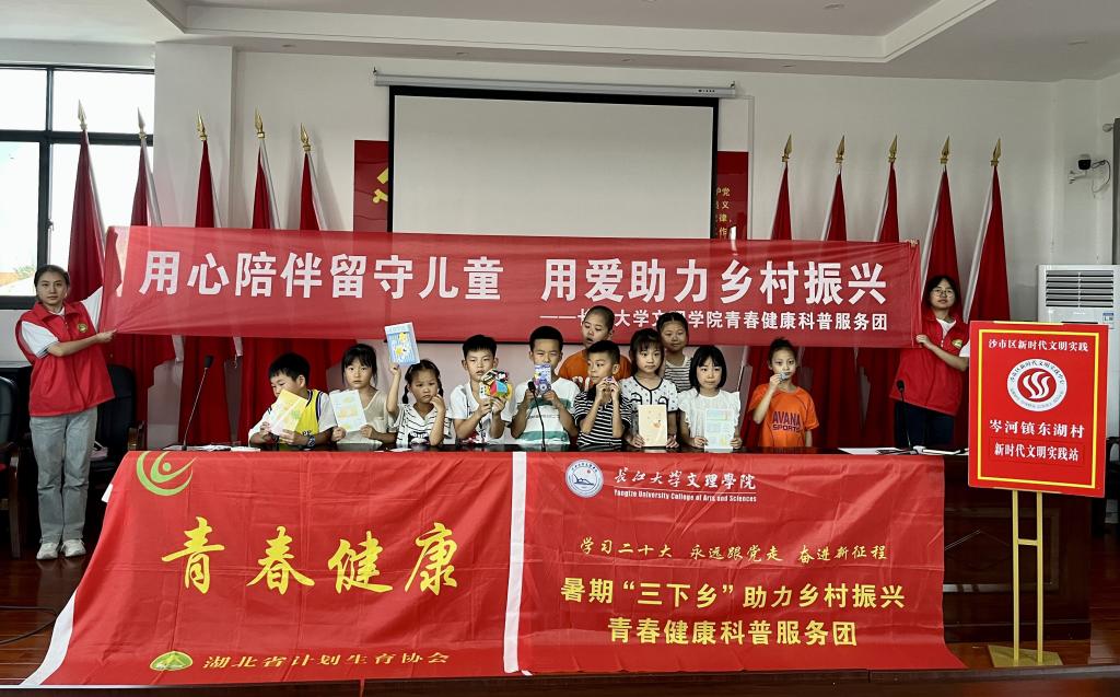 本网讯(通讯员 马思蓉)2023年7月10日,beat365官网中文版本青春健康科普服务团积极响应号召,前往荆州市沙市区岑河镇东湖村开展了“学习二十大 永远跟党走 奋进新征程”助力乡村振兴暑期“三下乡”送教志愿活动。