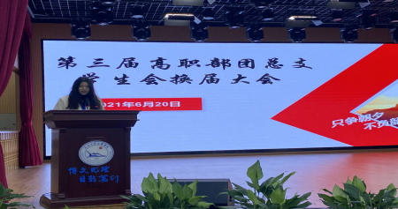 大会第四项:第三届高职部团总支员工会主席团成员代表周海静上台发言,她表示在员工会是一个锻炼人的地方,在员工会改掉了自己的不足之处,学会的很多。同时也希望新一届的员工会能更加努力,展示一个不一样的风采。