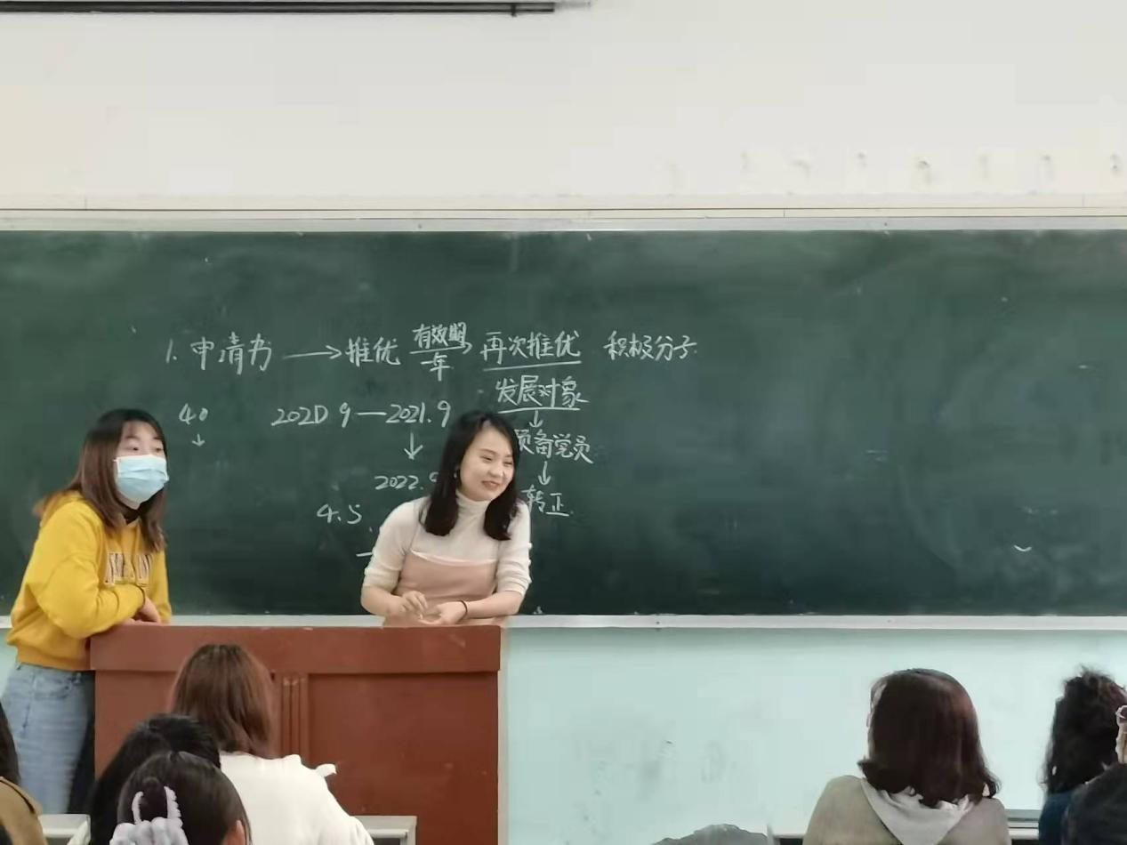 本网讯(通讯员 董润楠)2021年11月4号12:30在西区二教104成功开展了入党流程学习会议。本次大会主要围绕党员申请,发展预备党员等内容开展。届时会议的有高职部团总支书记黄婷婷,龚晓曦老师,高职部全体辅导员以及各班团支书。