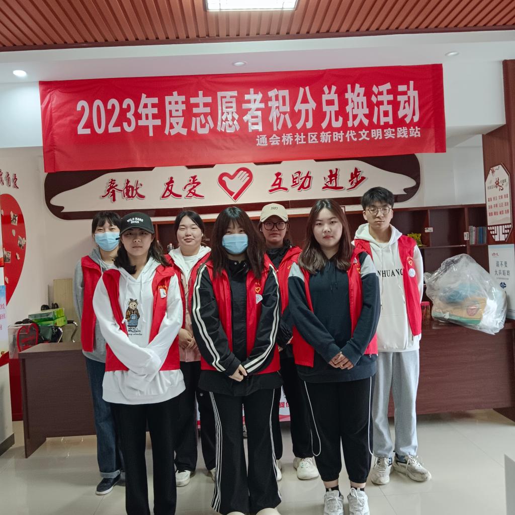 本网讯 (通讯员 黄婷婷)5月10日,beat365官网中文版本高职部“晨曦”志愿者服务队联合通会桥社区新时代文明实践站开展2023年度社区志愿者积分兑换活动。