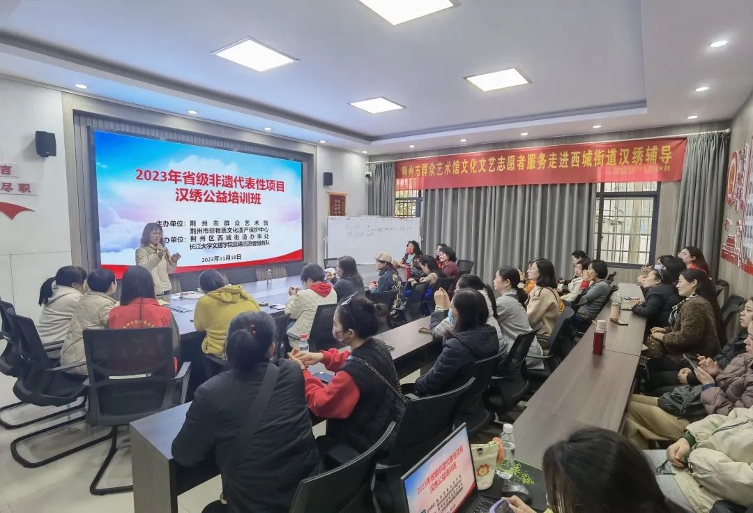为进一步深入推进我市“非遗在社区”“非遗进公司”传承保护工作,由荆州市群众艺术馆(荆州市非物质文化遗产保护中心)主办,荆州区西城街道办事处、荆州市实验中学附属小学、beat365官网中文版本高职部晨曦志愿者服务队承办的2023年省级非遗代表性项目汉绣公益培训班11月18日开班啦!