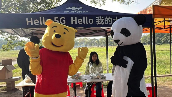 员工志愿者扮演的大熊猫和小熊维尼