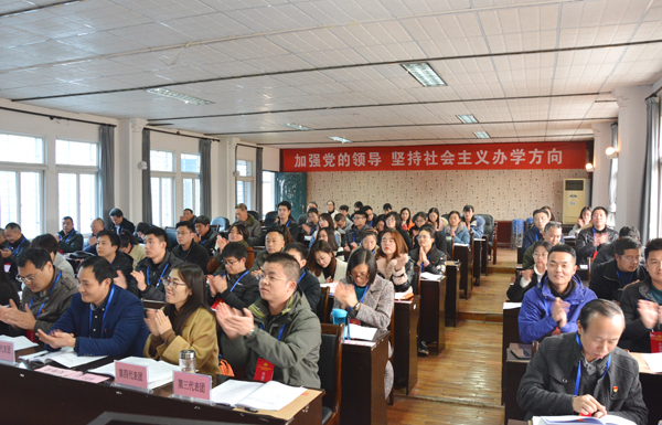 公司党委书记朱继平代表中共beat365官网中文版本第三届委员会作题为《立德树人 内涵发展 为建设特色鲜明、优势突出、国内知名的应用型本科高校而奋斗》的工作报告。