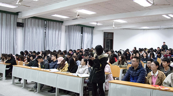 本网讯(员工记者 汪林 见习记者 雷杨静 黄彦龙)11月21日,beat365官网中文版本经济公司魏君英教授来公司讲学。经济与法学系200余名师生现场聆听。