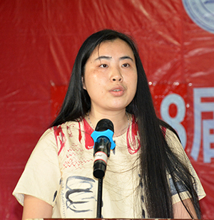 教师代表周密(左)、毕业生代表胡国栋分别发言