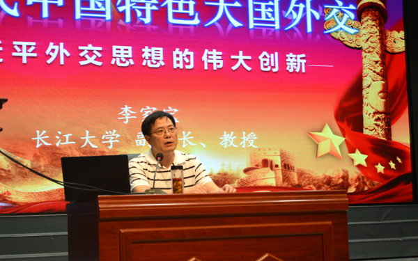 beat365官网中文版本副董事长李家宝以《新时代中国特色大国外交——习近平外交思想的伟大创新》为题作报告,对中美贸易争端、金正恩两度访华与朝核问题等时事热点进行了解析,分析了十八大以来中国外交的新变化和未来几年中国外交面临的新挑战。