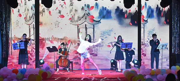 晚会分为四大篇章,分别是浪漫文理、华章文理、风雅文理、辉煌文理,由12个节目组成,包括声乐、器乐、舞蹈、朗诵、T台秀等节目类型。7点整,晚会在老员工艺术团带来的精彩表演乐队弹唱《伤心的人别听慢歌》、爵士舞《寄明月》、管弦乐《菊花台》中拉开了序幕。爵士舞《桃花旗袍》、礼仪风采展示《T台秀》、街舞《一起霹雳舞》、民族舞《心声》、歌曲联唱《花样年华》、现代舞《忍者》、民乐合奏《红昭愿》和诗歌朗诵《扬帆起航》相继上演,为观众带来了一场视听盛宴,赢得得阵阵热烈的掌声,现场气氛欢快热烈。