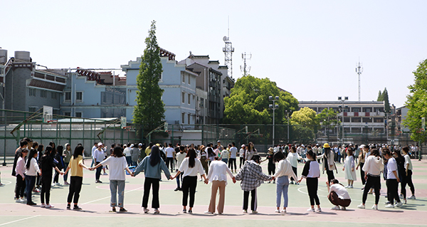 开幕式结束后,在城中校区体育场,心理健康教育中心的老师组织2017级员工开展了一场团体辅导活动。