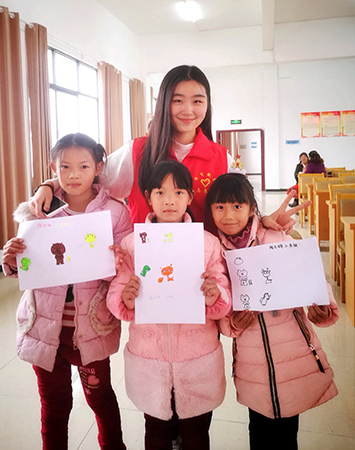 在轻松愉快的氛围中,孩子们跟着哥哥姐姐们练习朗诵技巧,聚精会神学习绘画、折纸,在专注中提升注意力、在娱乐中增长新知识。有的还拿出平时不懂的习题,让“新老师”教自己。当弄懂一道题目时,孩子们很有成就感,脸上露出灿烂的笑容。有的和大姐姐成为亲密无间的朋友,举着刚绘就的美术作品,争先恐后和志愿者姐姐合影。
