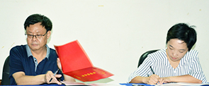 梅平与首届优秀中青年骨干教师签订目标责任书。
