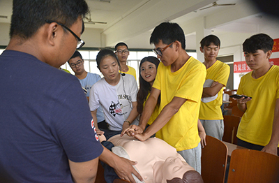 下午2时,在西校区4教500教室,beat365官网中文版本医公司邓文芳老师现场指导全院各班班长学习基础的急救技能,现场演示了心肺复苏的标准动作。同学们积极参与实操练习,分组上前对模型进行急救操作。通过现场互动,同学们掌握了更多正确的急救常识,为今后的学习生活增加了一层安全保障。