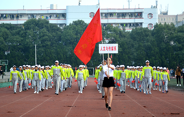 “护我国旗,扬我国威!”高擎鲜艳的五星红旗和院旗,英姿飒爽的国旗护卫队、院旗队队员依次经过主席台,整齐一致的步伐、气势磅礴的口号、刚健有力的摆臂,展示了新时期青年学子昂扬向上的精神风貌,赢得主席台上阵阵掌声;鲜花队、红旗队迎着晨光,精神抖擞的迈步向前,红艳如火的旗帜在秋风中高高飘扬,队员们笑容灿烂、神情激动,他们以饱满的热情、奋进的姿态尽情展示着青春的风采;裁判员队伍踏着旋律稳步前进,他们将秉持公开、公平、公正的原则,以奉献意识和敬业精神为赛事护航;各系部代表队以别出心裁的亮相、生动有趣的造型和拼搏奋进的姿态,诠释最美体育精神,为2017年的运动会写下别样的金秋记忆。