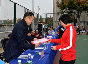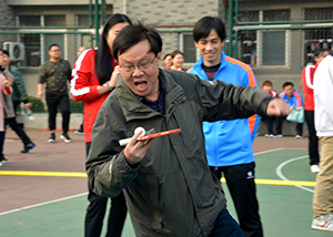 院领导也饶有兴致的走上运动场,热情高涨的和教职工共同参加比赛。