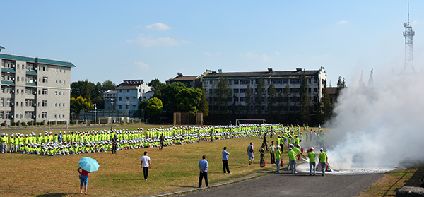15时20分,同学们在田径运动场集合,聆听荆州区消防中队中队长李杰讲解灭火常识,现场观摩灭火示范性操作演示,参加灭火实践。湖北省教育厅检查组组长、湖北省教育厅离退休干部处处长黄念平、公司经理梅平来到现场观摩灭火演示活动,并分别发表讲话。