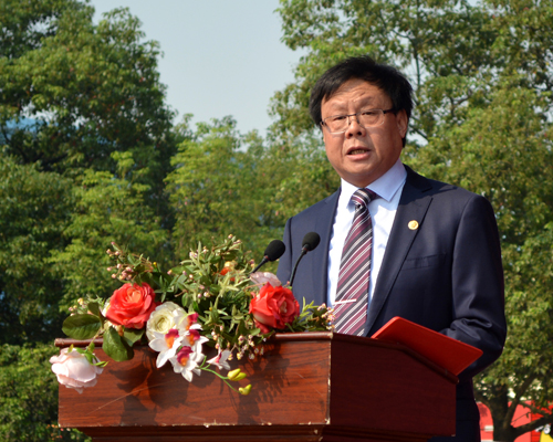 梅平寄语同学们“坚守淡泊气自雄,花开宁静展未来”。他说,今天是你们人生路上又一个崭新的起点。你们首先要做的事情是让自己安静下来,忘记曾经的成绩和掌声,忘却一时的满足和得意,解放心灵、释放真我,在前行的道路上叩问初心,在宁静中展望新的未来。