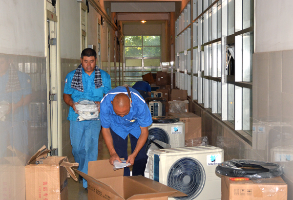 据后勤与保卫处相关负责人介绍,公司分步实施“空调进寝室”计划,之前已经有300间寝室安装了空调,今年将为433间寝室安装空调,空调安装预计月底全部完工,除部分老旧宿舍需翻修改造以外,其余校内所有宿舍楼都将有空调。此外,暑假期间,公司将完成整体大修城中校区员工宿舍5栋,更新标准化家具375套,维修员工住房63间。