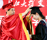 梅平、王金琼、李琴、郭睦庚、王学峰、曹骥分别为毕业生颁发学位证书、援正流苏