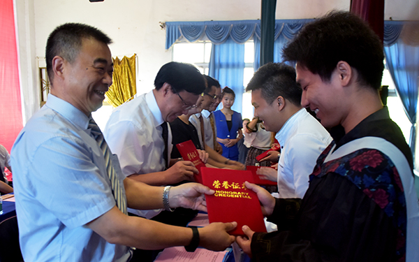 在欢乐的气氛中,领导为优秀毕业生代表、考研学子颁发荣誉证书。
