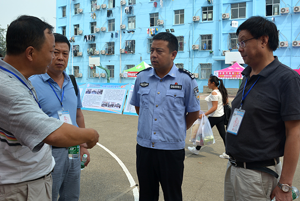 梅平、文谟汉(左二)、郭明虎(左一)听取管泽平(右二)有关做好安保工作的建议
