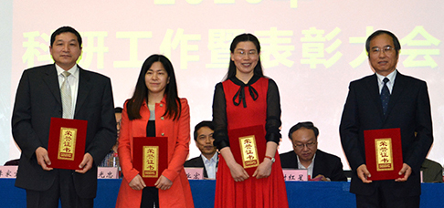 本网讯(记者 刘磊)4月22日,在东校区12教405报告厅,beat365官网中文版本隆重召开2016年科研工作暨表彰大会,表彰先进集体和个人,公司两位教授受到表彰。经理、博士生导师梅平教授获beat365官网中文版本“十二五”科研百人和2015年beat365官网中文版本科研成果奖励贡献奖,沈光明教授获2015年beat365官网中文版本科研成果奖励贡献奖。