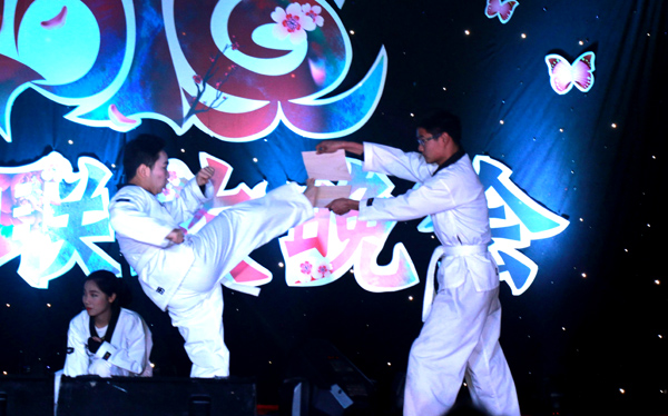 晚会现场人声鼎沸,光影、人海、彩球和挥舞的荧光棒点燃了阑珊夜色中的欢乐与激情。伴随着强劲的音乐,晚会在开场舞蹈《拉丁舞》中拉开了帷幕。临床5154班的丁陈慧表演的独舞《云之南》动作优美、引人入胜;由2015级新生自编、自导、自演的武术《台风》让观众领略到了武术的独特魅力;挥洒自如的T台走秀,淋漓尽致地展现了他们的默契与配合。青春洋溢的歌曲《最美的太阳》、幽默诙谐的相声小品《招聘》和话剧《大话霸王别姬》等节目轮番登场。整场晚会精彩不断,高潮迭起,赢得阵阵掌声。