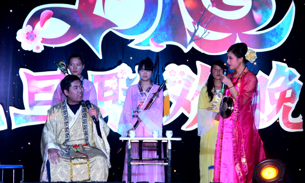 本次晚会共有14个节目,包括歌曲、小品、武术、舞蹈、话剧等,为观众呈现了丰盛的视听盛宴。晚会在歌伴舞《难忘今宵》中圆满落幕。