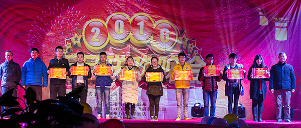 新元素的注入为舞台增添了新活力,本次晚会开通了微信、微博平台,现场观众通过扫描二维码,与晚会实时互动,实现了台上台下零距离交流。晚会分两轮在微信公众号中随机抽取了6名幸运观众,获得新年礼品。