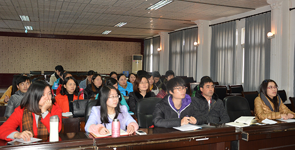 报告厅内暖意融融,学术氛围浓烈。何明霞倾心相授教科研工作经验。她以《教学团队建设与教研课题申报》为题,从教学团队建设、教研课题申报和教学成果奖申报三个方面,对青年教师的职业规划、未来发展以及职称晋级、努力方向等提出建议。