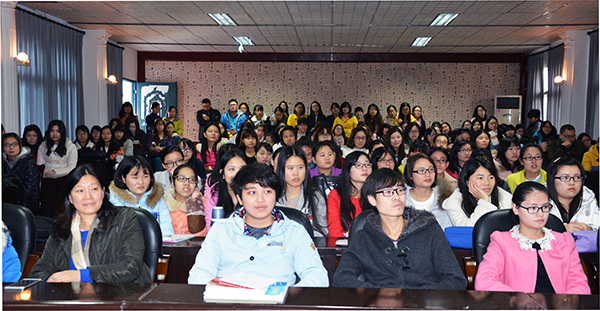 本网讯(记者 刘磊)11月18日下午,武汉大学口译专家黄敏应邀来到公司,为外语系百余名师生讲学。外语系系主任许晓艳与大家共同聆听。